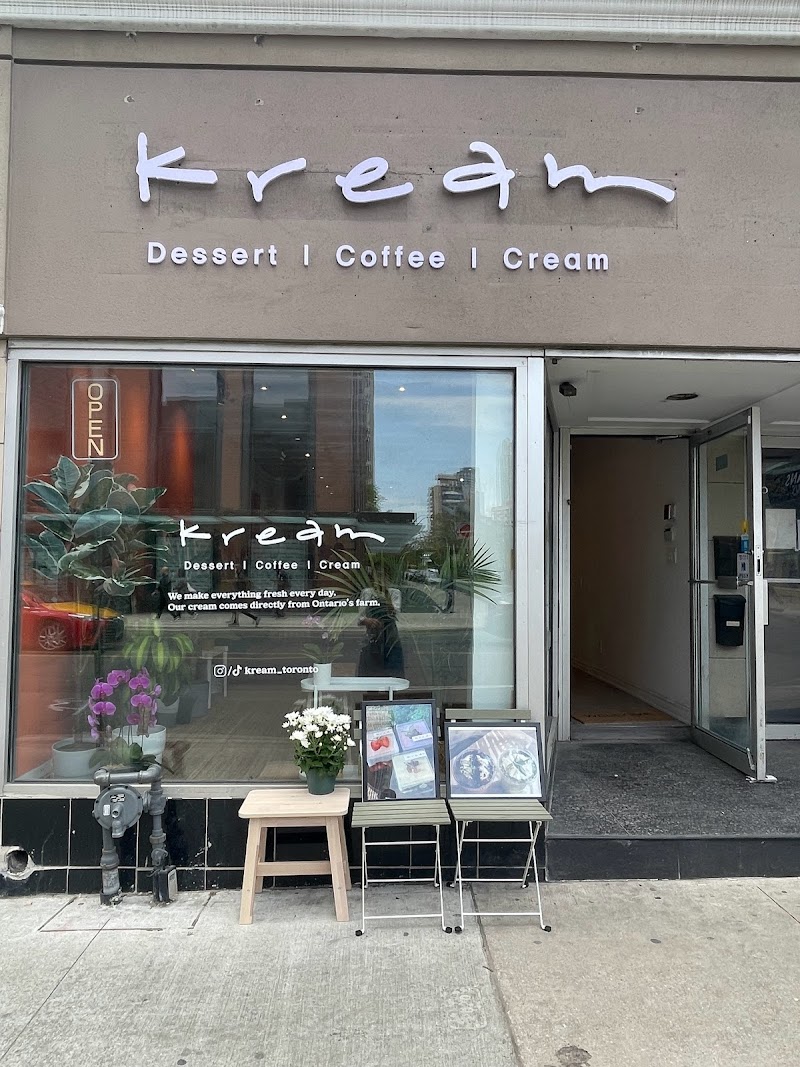 Kream in Toronto is a 4.8-star restaurant with 2,331 Google reviews, known for Dubai Chewy Cookie / Dubai Chewy Ball and Crème Brûlée Croissant.